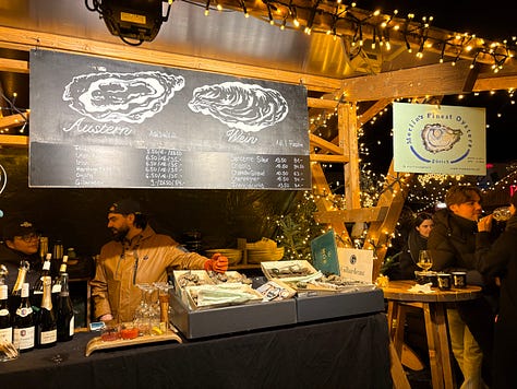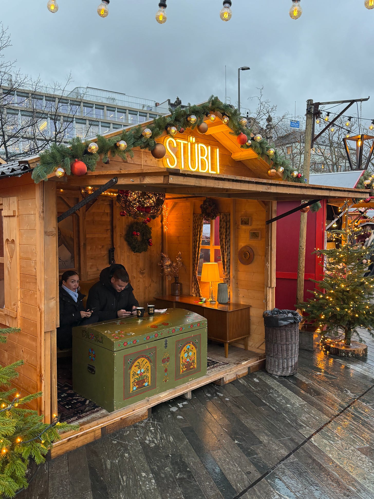 While each market is unique in its offerings and “vibes,” they do have common qualities. Sprinkled among the stalls are “Stübli,” which is the Swiss German word for “Stube,” which means “cozy dining room.”