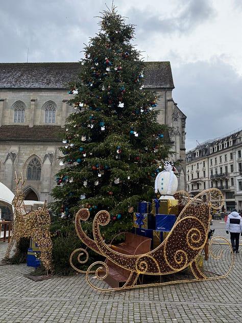 I have been (rightfully) accused of not properly leaning into the Christmas season for a long time. I was “that guy” who spat on the idea of decorations or a tree before December. I was resistant to extra fun and events because they felt like a bit of a chore and were very commercialized. Something has flipped inside me, though, and I have been properly savoring Christmas since early November. First was the purchase of this badass “tree” that feels so “Zürich” to us.