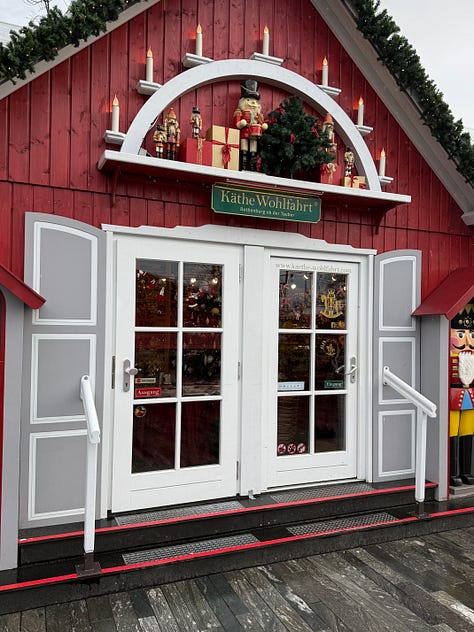 It’s where you sit down and drink your “Glüwein, “ a traditional alcoholic drink made from red or white wine that is heated and spiced with ingredients like cinnamon and cloves. The name translates literally to “glow wine.” You can buy Glüwein EVERYWHERE, and some stalls have popped up along the streets just selling this beverage.