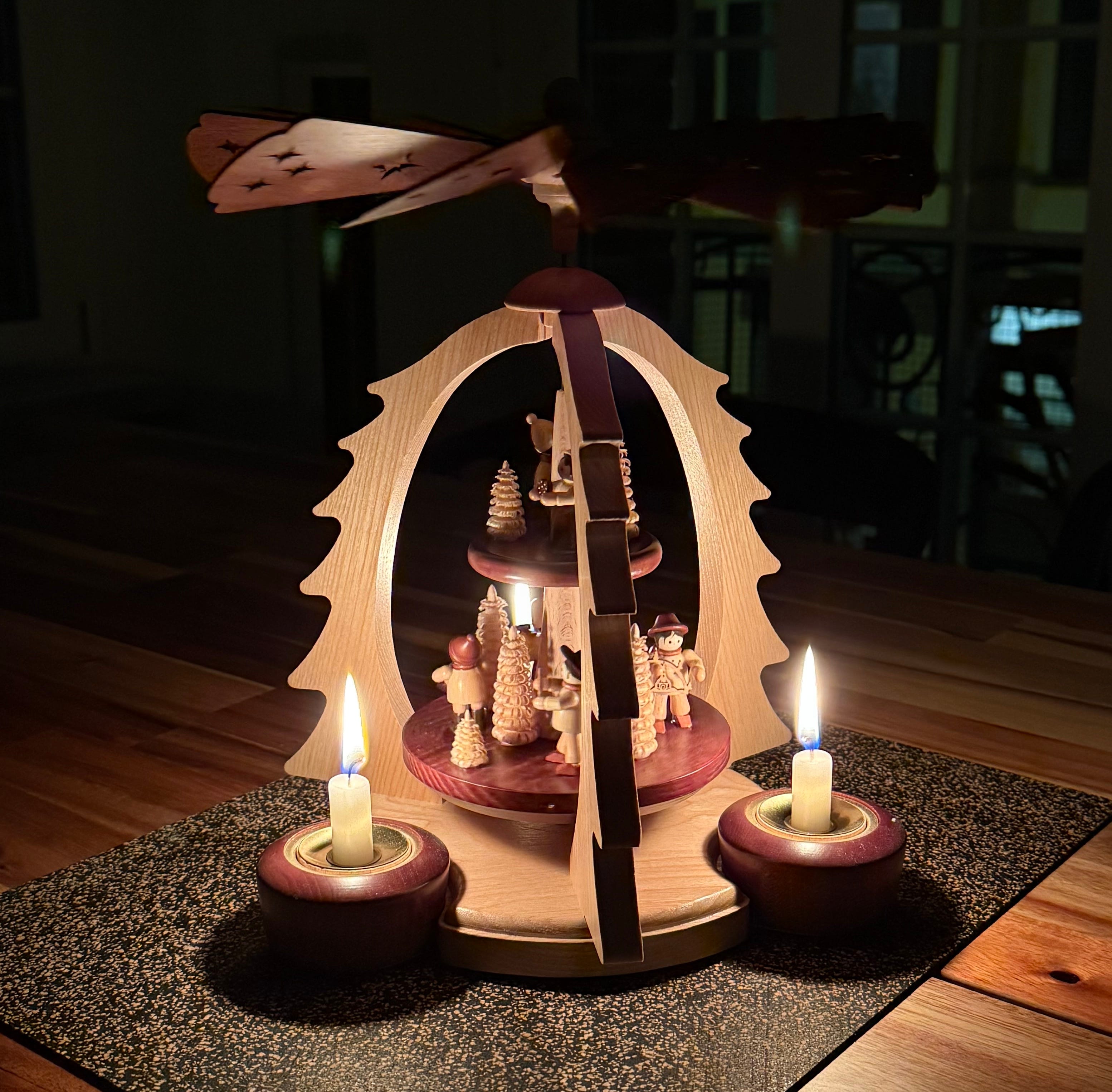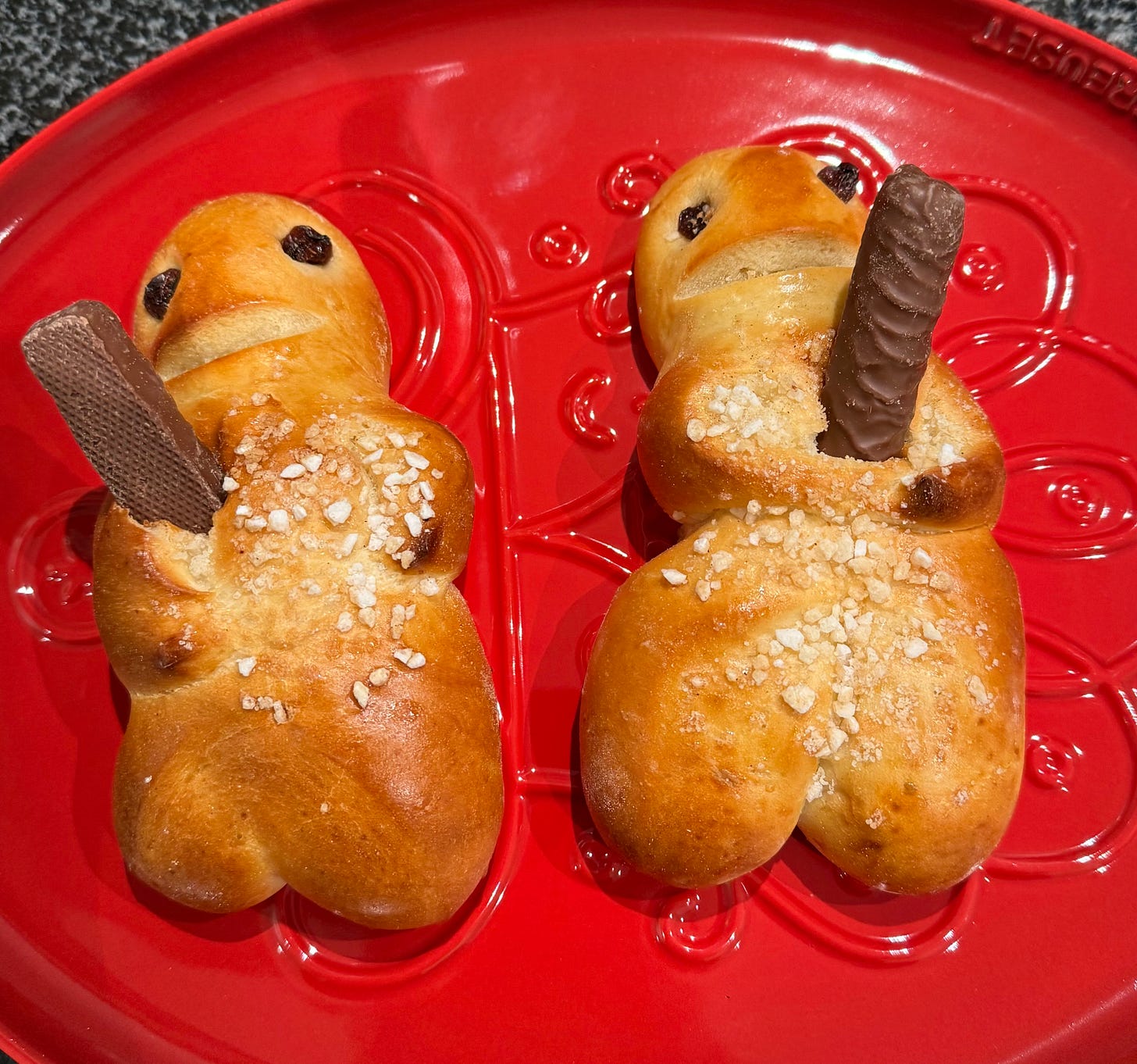 But this is a post about the magical celebration of Christmas here. As Thanksgiving is not celebrated here, I have let the person who wants a “Christmas Pyramid” (pictured at the top) out of his cage early! I have purchased the seasonal bread, Grittbänz, which celebrates St. Nicholas Day, December 6th.